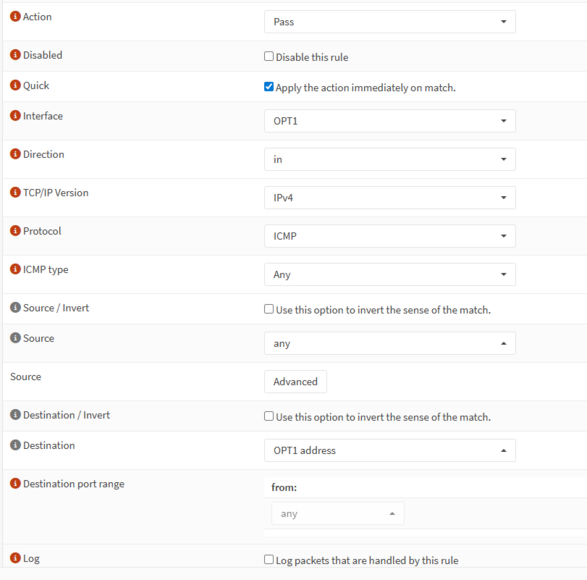 * '''Description''' : Allow ping on | * '''Description''' : Allow ping on OPT1 | ||